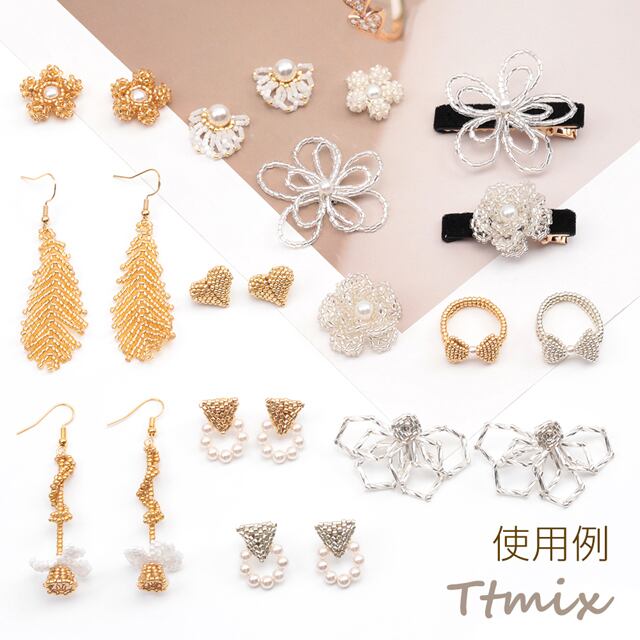 B1649 デザインピアス ハート 編みビーズ メタルビーズ スタッドピアス キャッチ鉄製 約13×16mm(1ペア)