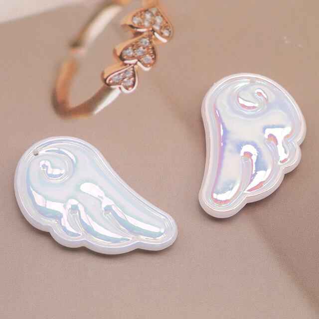 A6063 アクリルチャーム つばさ 羽型 オーロラ加工 アクリルパーツ 穴あり 約25×41mm(4ケ)