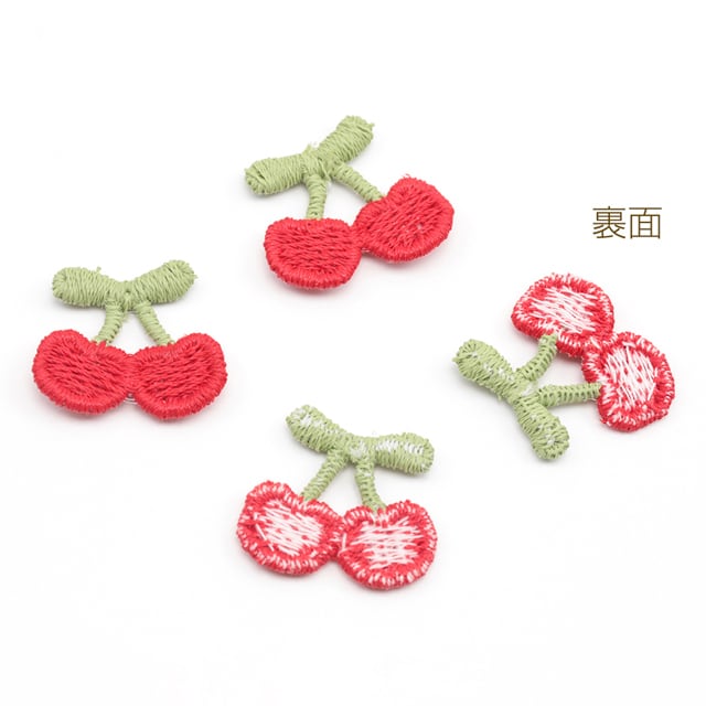 C611 刺繍ワッペン チェリー アップリケ 刺繍パーツ テープキーホルダー装飾 衣服 帽子飾り付け 約16×18mm (20ケ)
