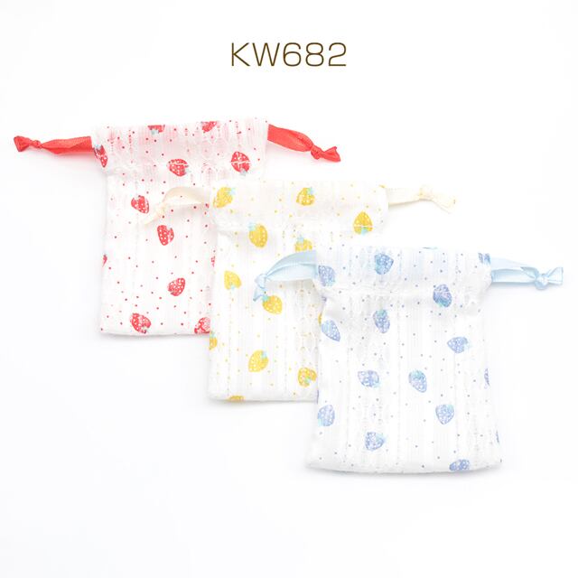 KW682 ミニ巾着ポーチ3点セット 大人可愛い いちご柄 小物入れ プチギフトにも (1ヶ)