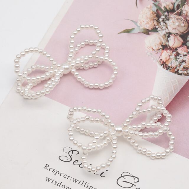 A6071 ビーズ編みパーツ パールリボン ホワイト リボンビーズパーツ 髪飾り 服飾り 手芸パーツ