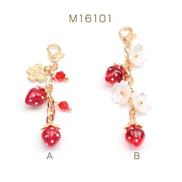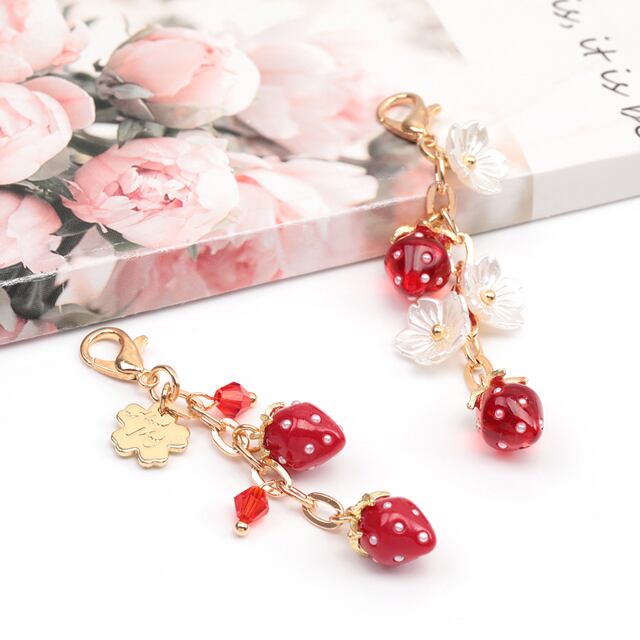 M16101 カニカン付き苺チャーム リアルいちご スマホチャーム マスクチャーム ストラップ キーホルダー(1ヶ)