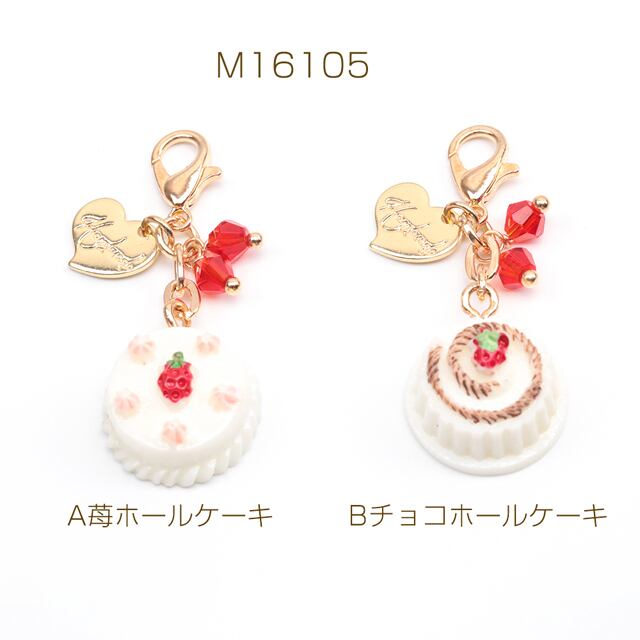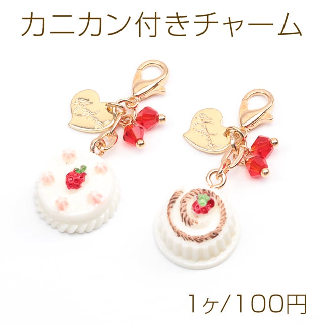 M16105 カニカン付きチャーム スイーツチャーム ケーキ ポーチのファスナー スマホ マスク バッグお好きなところに簡単に装着(1ヶ)