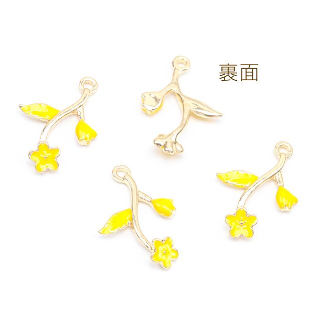 M16114 エポチャーム フラワー お花 イエロー メタルチャーム 約15×22mm(4ヶ)