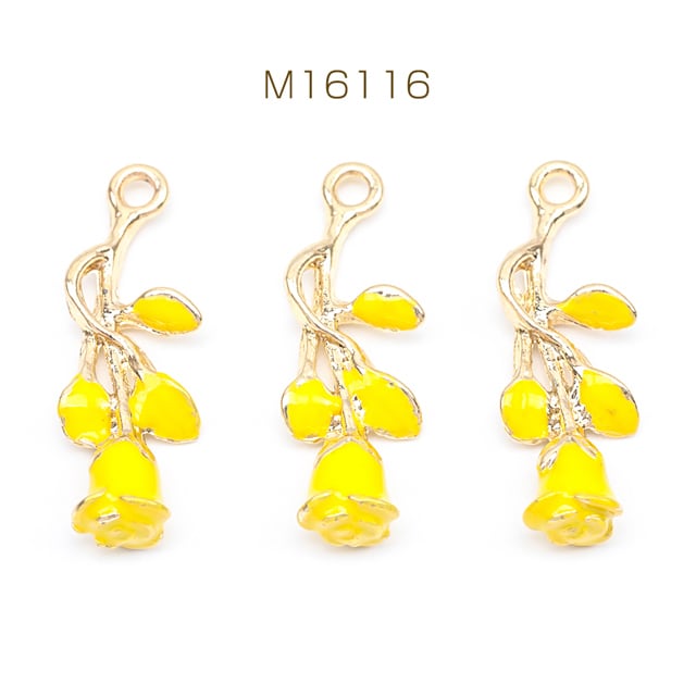 M16116 エポチャーム フラワー お花 一輪 イエロー メタルチャーム 約10×28mm(4ヶ)