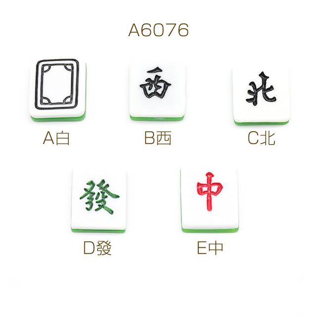 A6076 樹脂貼付けパーツ 麻雀牌 白/西/北/發/中 アクリルパーツ デコパーツ 約20×26mm(6ヶ)