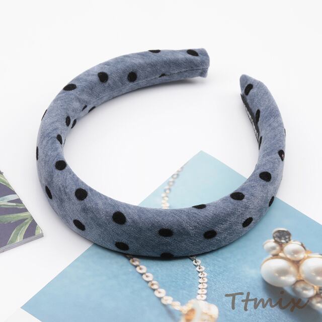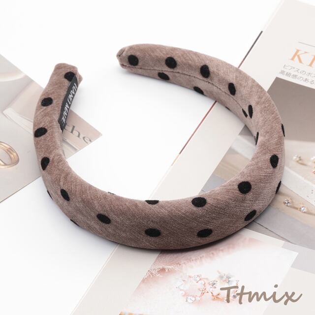 TH1509 カチューシャ 水玉ドット柄 ボリューム感 厚みのあるヘアバンド ウール 秋冬用 髪飾り ヘアアクセサリー 幅約3cm(1ヶ)