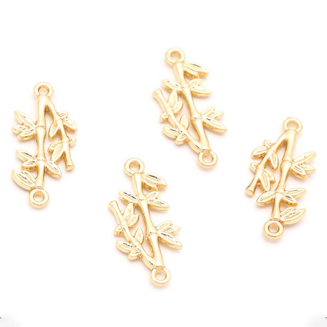 M16126 コネクターチャーム 竹 葉っぱ 接続金具 連結 コネクター 植物チャーム メタルチャーム 約12×25mm(6ヶ)