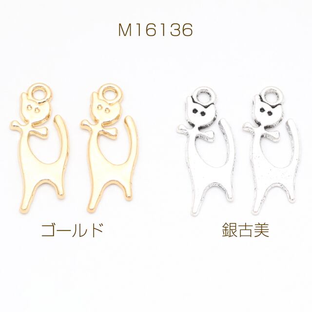 M16136 猫チャーム ネコ リボン アニマル プレートチャーム 動物チャーム メタルチャーム 約10×26mm(6ヶ)