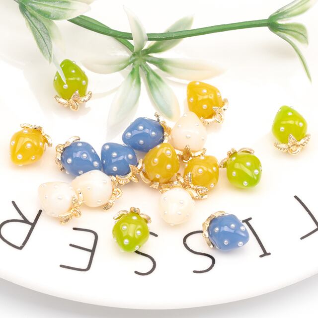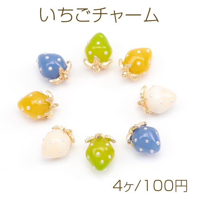 A6077 いちごチャーム NEWカラー 2026年春の新色 パール付き ストロベリー イチゴ 苺 樹脂チャーム 約8×11mm(4ヶ)