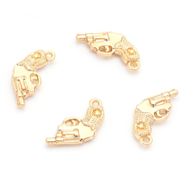 M16145 ピストルチャーム 星マーク付き 銃 鉄砲 武器 警察 ポリス スパイ メタルチャーム 約13×17mm(6ヶ)