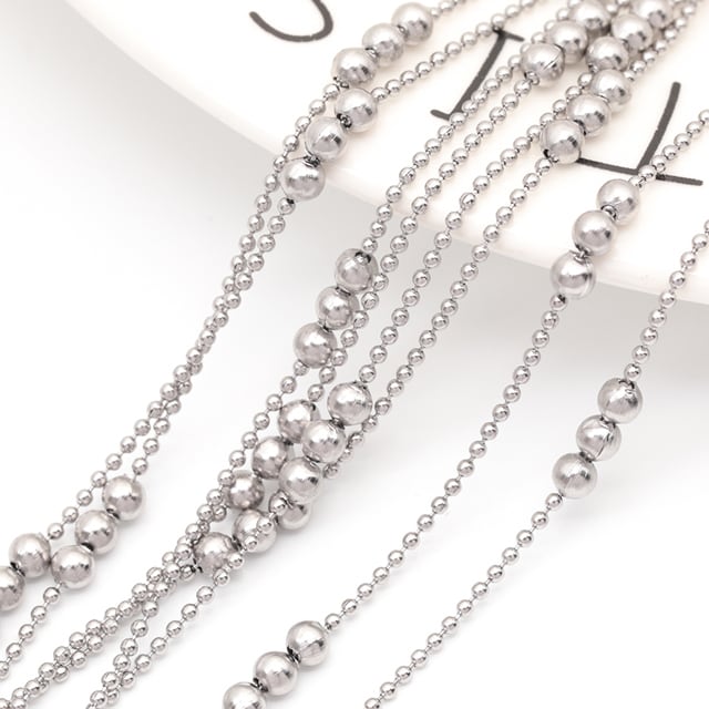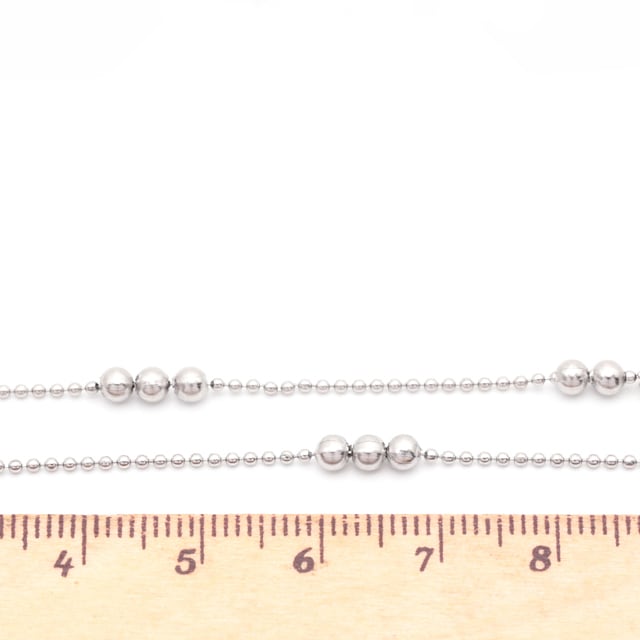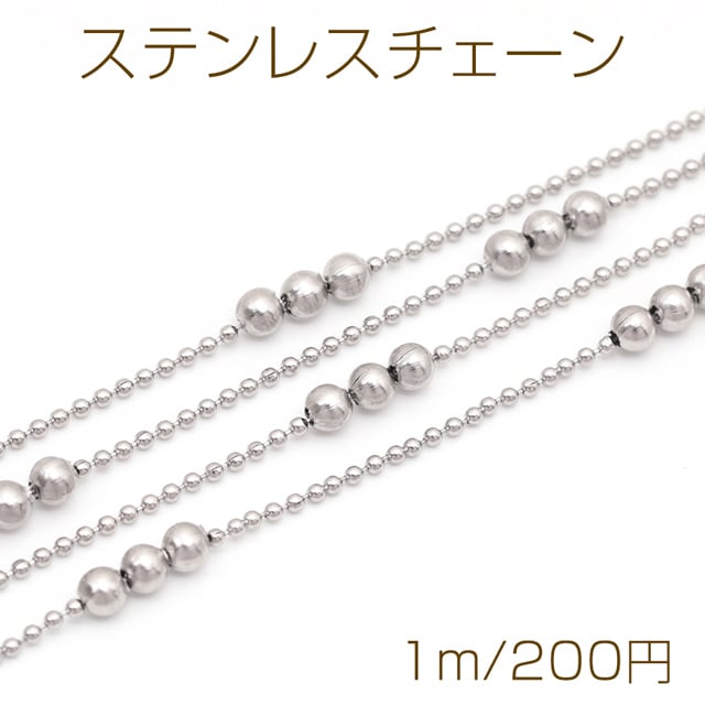 L1013 ステンレスチェーン 3連ビーズ 1.2mmボールチェーン デザインチェーン メタルチェーン 基礎金具 幅約3mm(1m)