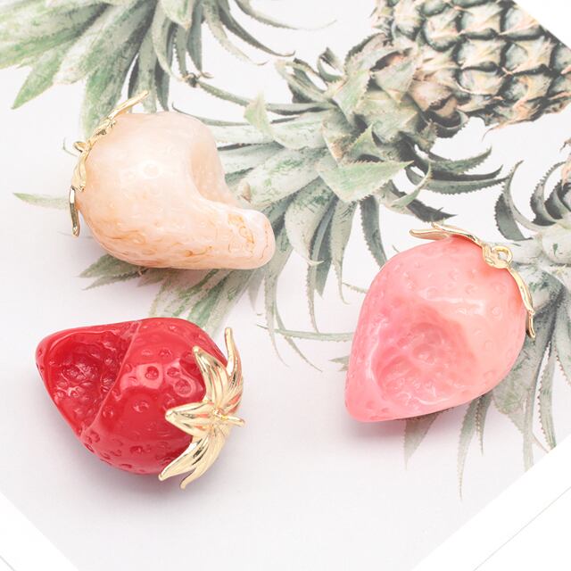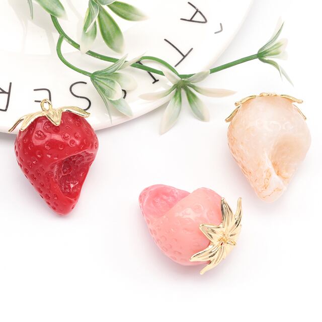 A6085 いちごチャーム かじり苺 立体いちごパーツ ストラップ ネックレス ハンドメイド素材 カン付き 約28×38mm (1ヶ)