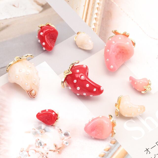 A6086 いちごチャーム かじり苺 立体いちごパーツ ピアス ネックレス ハンドメイド素材 カン付き 約8×14mm(4ヶ)