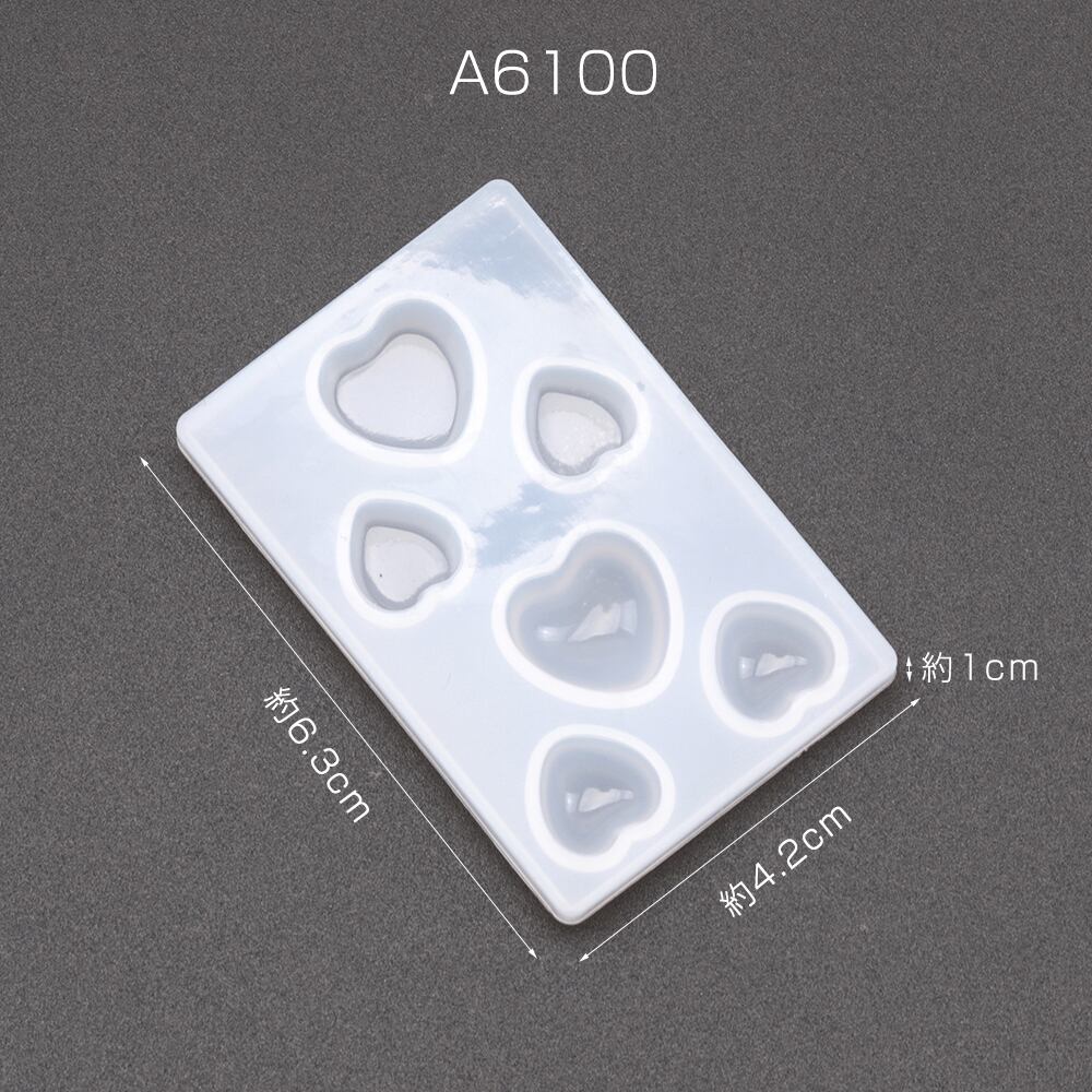 A6100 シリコンモールド ハート型 カボション レジン型 約1×4.2×6.3cm(1ヶ)