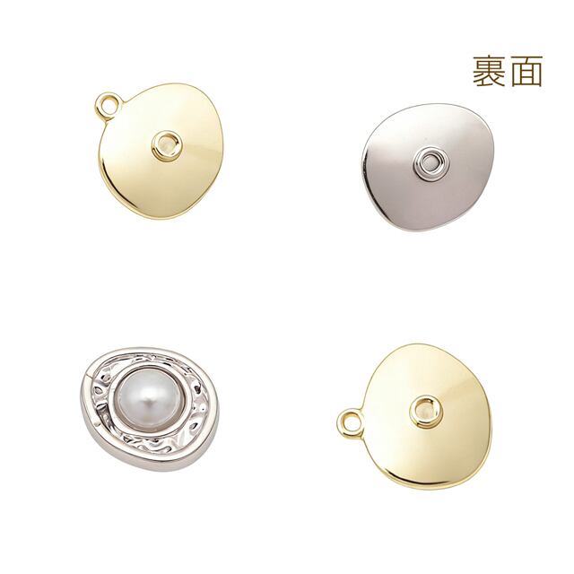 M16198 パールチャーム 不規則オーバル 1カン付き 半面 メタルチャーム 約13×13mm(4ヶ)