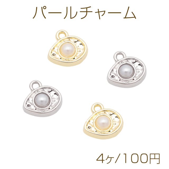 M16199 パールチャーム 不規則アーモンド形 1カン付き 半面 メタルチャーム 約8×8mm(4ヶ)