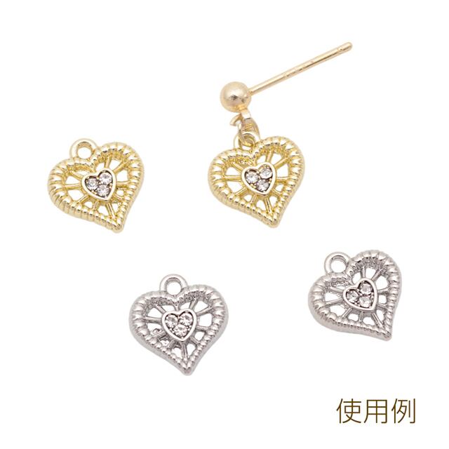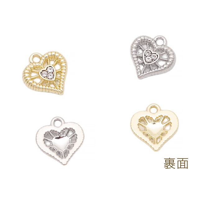 M16201 ハートチャーム ラインストーン付き 1カン付き 半面 メタルチャーム 約9×10mm(4ヶ)