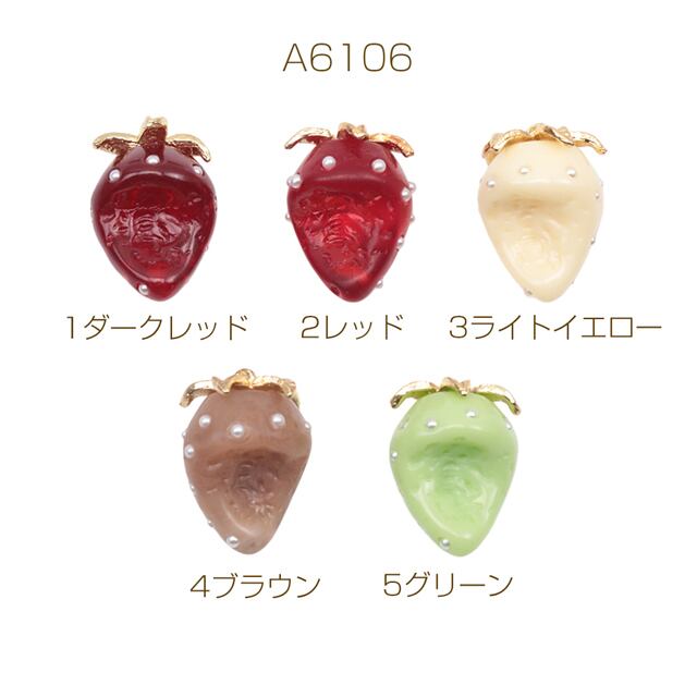 A6106 いちごチャーム かじり苺 パール付き かじった苺 食べかけ イチゴ カン付き 樹脂チャーム 約17×23mm(2ヶ)