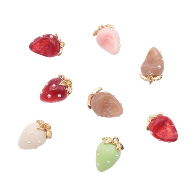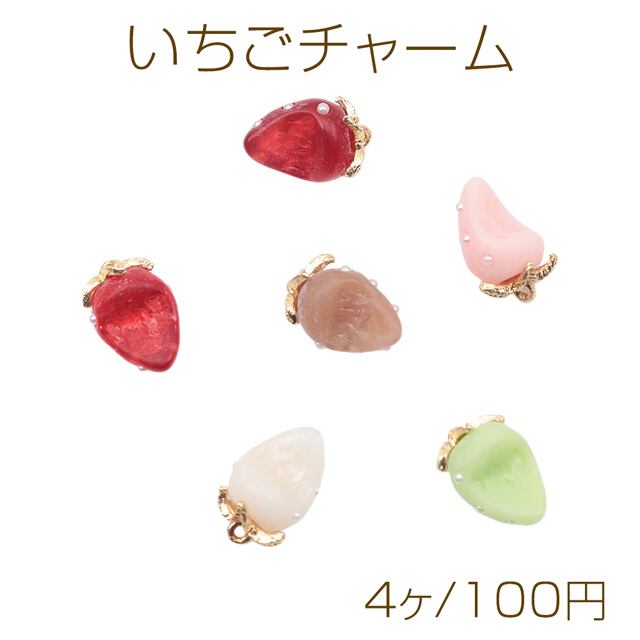 A6108 いちごチャーム かじり苺 パール付き かじった苺 食べかけ イチゴ カン付き 樹脂チャーム 約8×13mm(4ヶ)