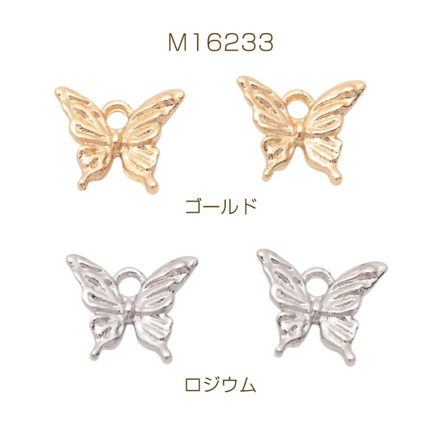 M16233 蝶チャーム 蝶々 ちょうちょ バタフライ カン付き 半面 メタルチャーム 約10×11mm(4ヶ)