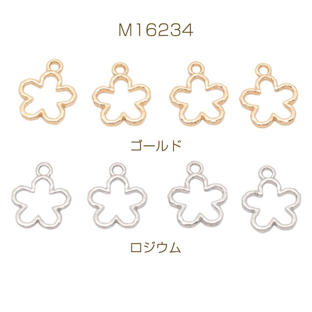 M16234 フラワーチャーム 五弁花 お花 手書風 カン付き メタルフレームチャーム 約11×14mm(4ヶ)