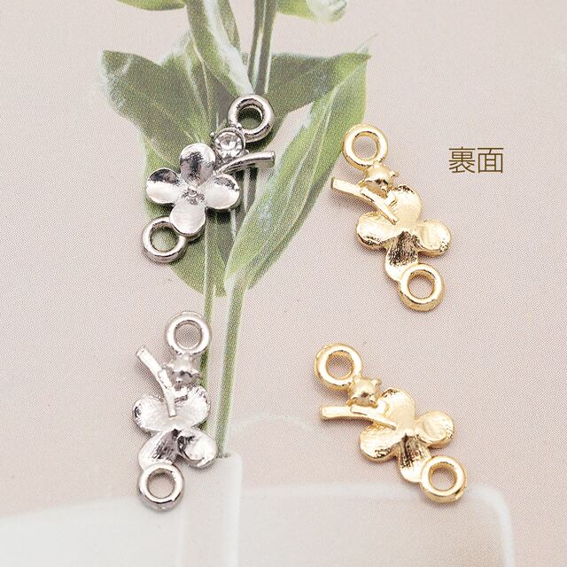 M16250 コネクターチャーム 四つ葉のクローバー パール/ストーン付き 2カン 接続金具 連結 メタルチャーム 約6×15mm(4ヶ)