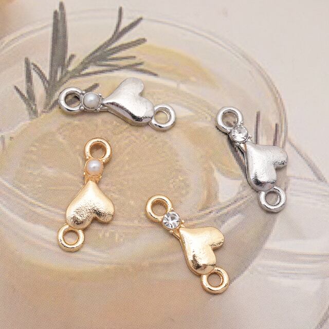 M16254 コネクターチャーム ハート パール/ストーン付き 2カン 接続金具 連結 半面 メタルチャーム 約6×15mm(4ヶ)