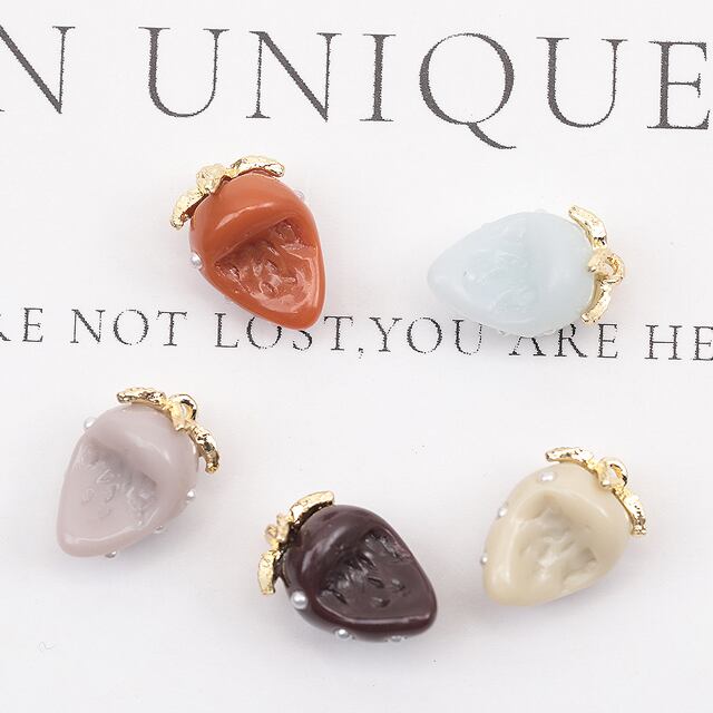 A6115 いちごチャーム かじり苺 パール付き かじった苺 食べかけ イチゴ カン付き 樹脂チャーム 約8×13mm(4ヶ)