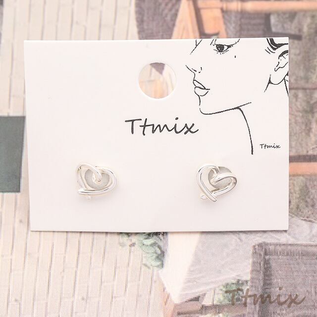 TE1153 デザインピアス ハート シルバーカラー 銅製 スタッドピアス 約6×7mm(2ヶ)