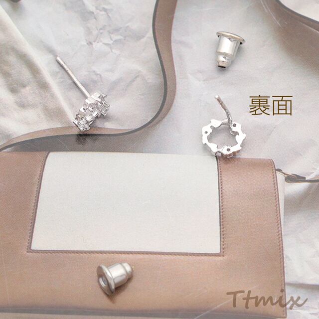 TE1155 デザインピアス フラワー リース風 ストーン付き シルバーカラー 銅製 スタッドピアス 約6×7mm(2ヶ)