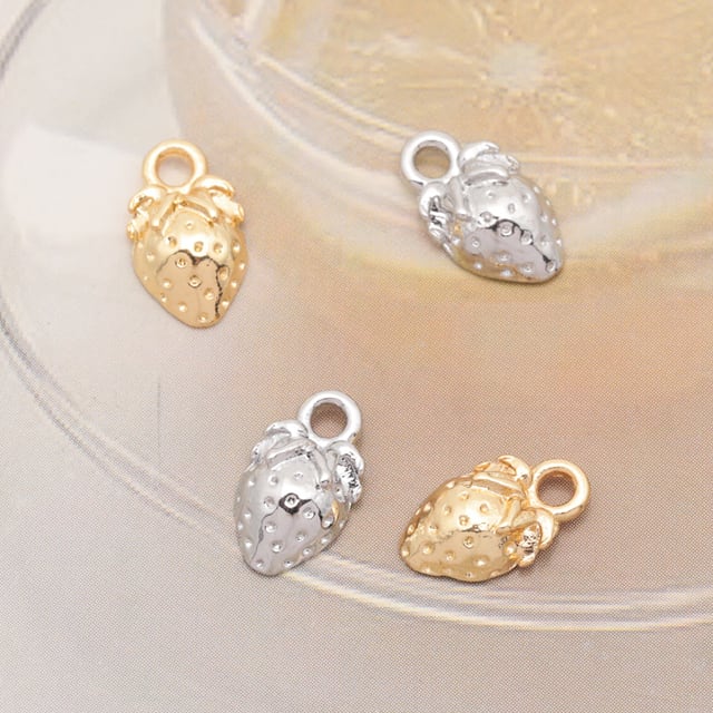 M16261 メタルいちごチャーム イチゴ 苺 ミニチュア 半面 メタルチャーム 約6×10mm(4ヶ)
