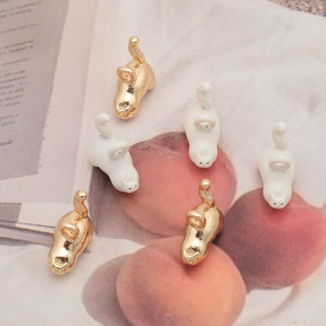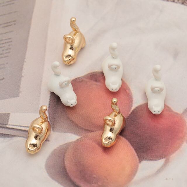 M16263 猫チャーム ねこ ネコ ミニチュア 動物 アニマル 立体 カン付き メタルチャーム 約10×11mm(4ヶ)