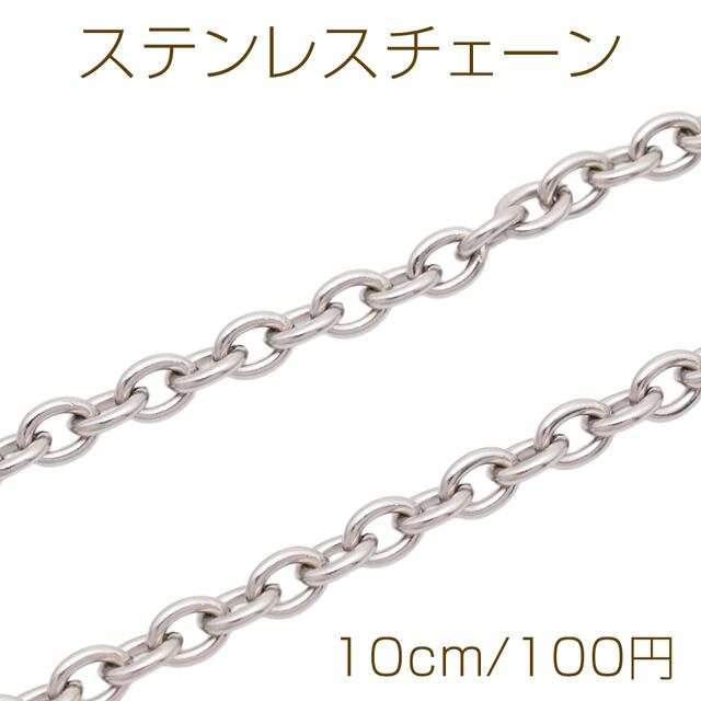 L1016 ステンレスチェーン あずきチェーン オーバル シンプル ハンドメードチェーン メタルチェーン 幅約6mm(約10cm)
