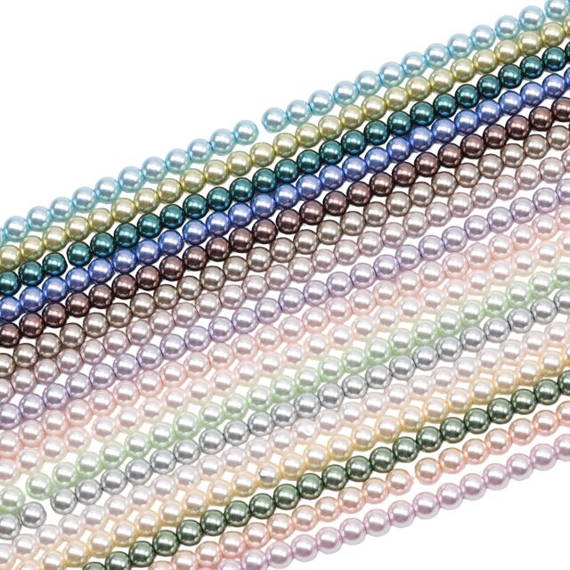 B1667 パール調ガラスビーズ 丸玉 染色カラーパール 一連ビーズ ガラスパール 全17色 約6mm(1連)