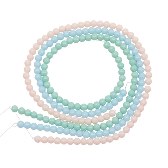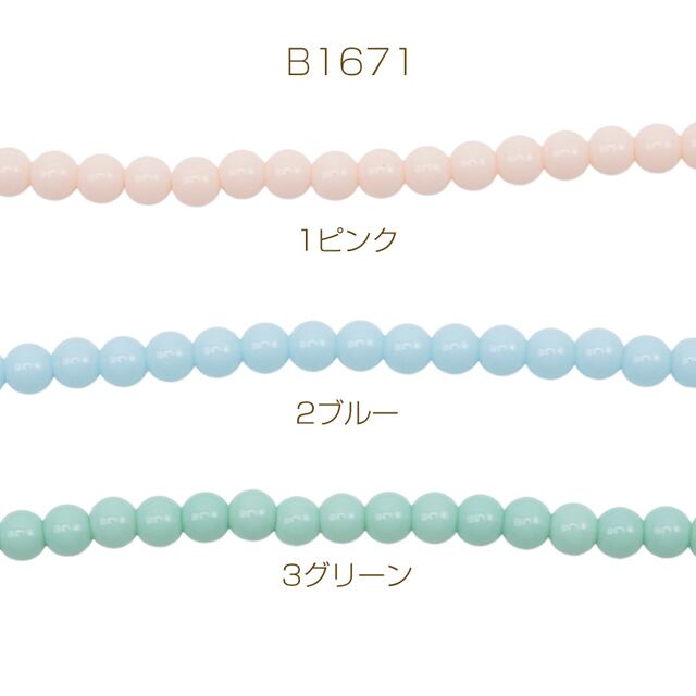 B1671 パール調ガラスビーズ 丸玉 パステルカラー 染色カラーパール 一連ビーズ ガラスパール 全3色 約6mm(1連)