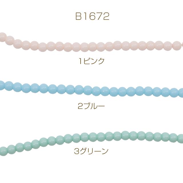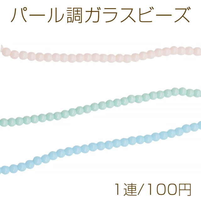 B1672 パール調ガラスビーズ 丸玉 パステルカラー 染色カラーパール 一連ビーズ ガラスパール 全3色 約4mm(1連)