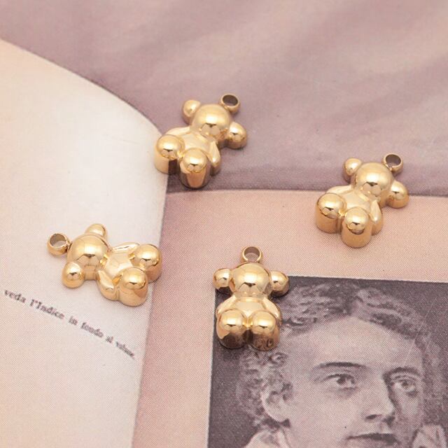 M16271 メタルチャーム くまモチーフ キュートアニマルパーツ ステンレス製 カン付き 11×15mm (1 ヶ)