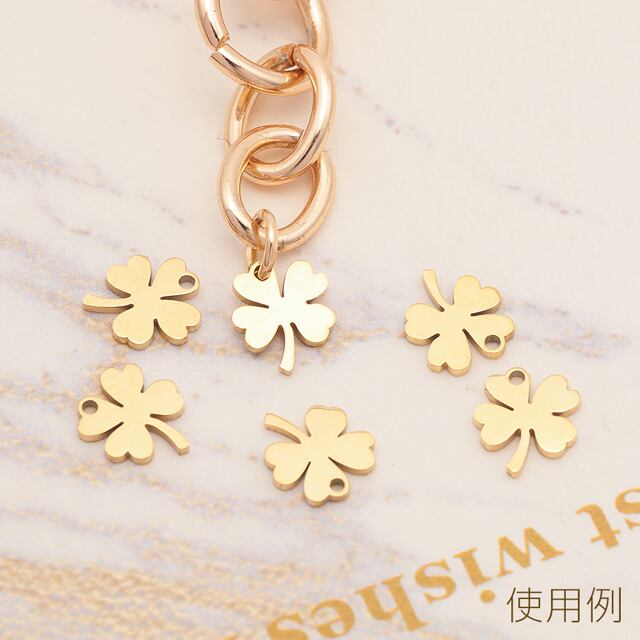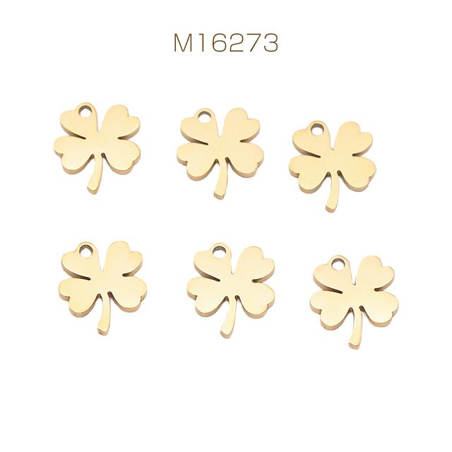 M16273 メタルチャーム 四つ葉クローバー クローバーチャーム ラッキーパーツ ステンレス製 カン付き 11×12mm (1 ヶ)
