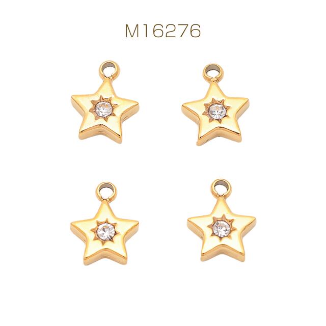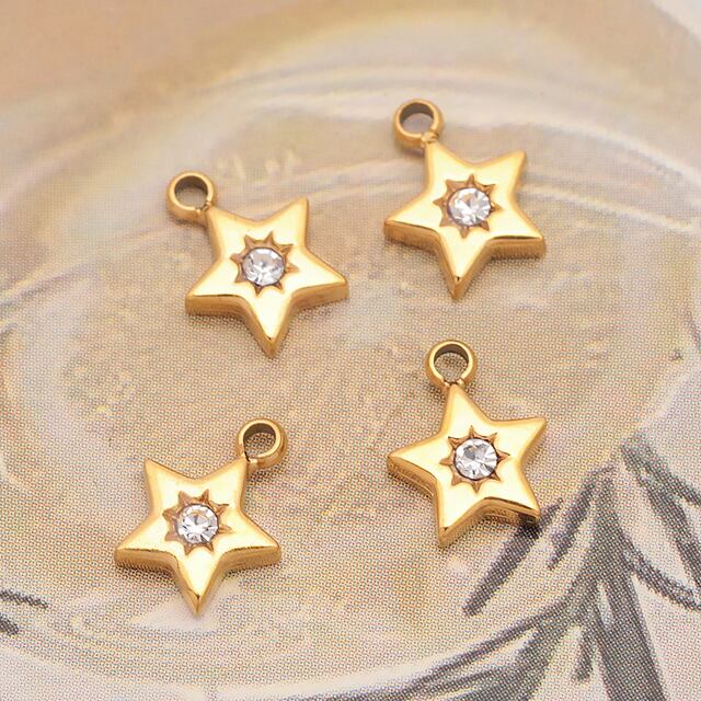M16276 メタルチャーム 星モチーフ ジルコニア付き星チャーム スターパーツ ステンレス製 カン付き 11×13mm (1 ヶ)