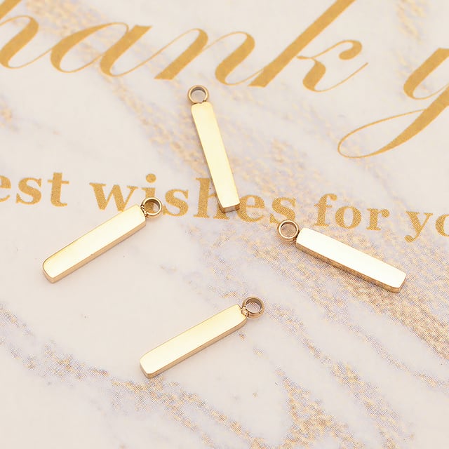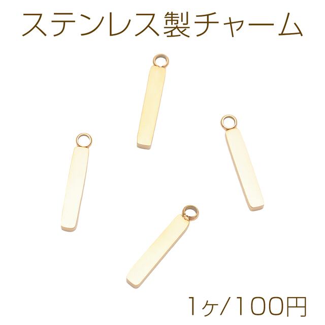 M16278 メタルチャーム 長方形プレートチャーム 細長プレートパーツ ステンレス製 カン付き 7×17mm (1 ヶ)