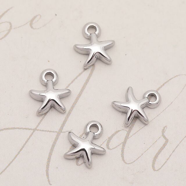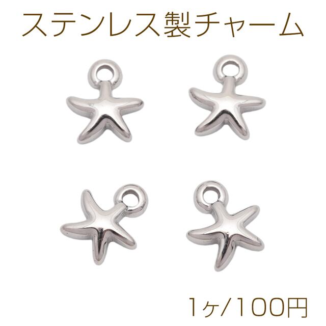 M16280 メタルチャーム ヒトデモチーフ ひとでチャーム マリンパーツ ステンレス製 カン付き 12×13mm (1 ヶ)