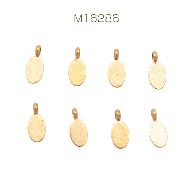 M16286 メタルチャーム 楕円形トップペンダントチャーム 貼付け台座 カン付き 8×12mm (2 ヶ)