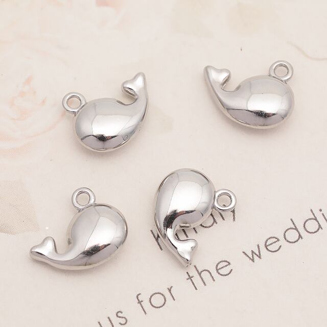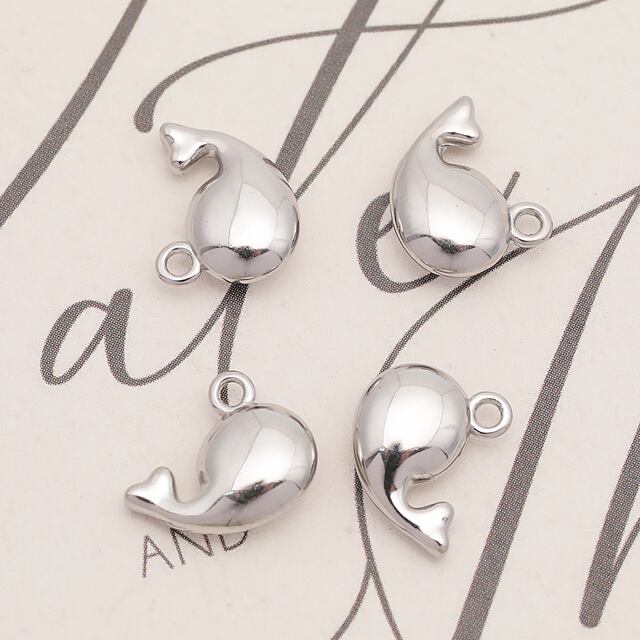 M16287 メタルチャーム クジラモチーフ マリンアニマルパーツ くじらチャーム ステンレス製 カン付き 13×15mm (1 ヶ)