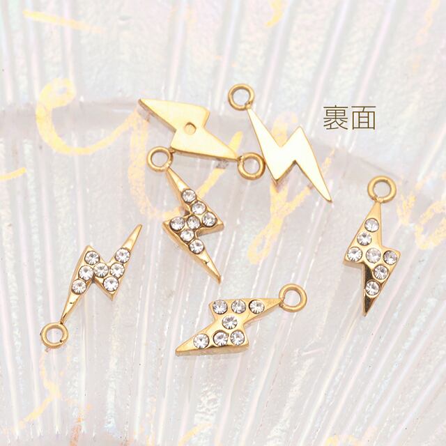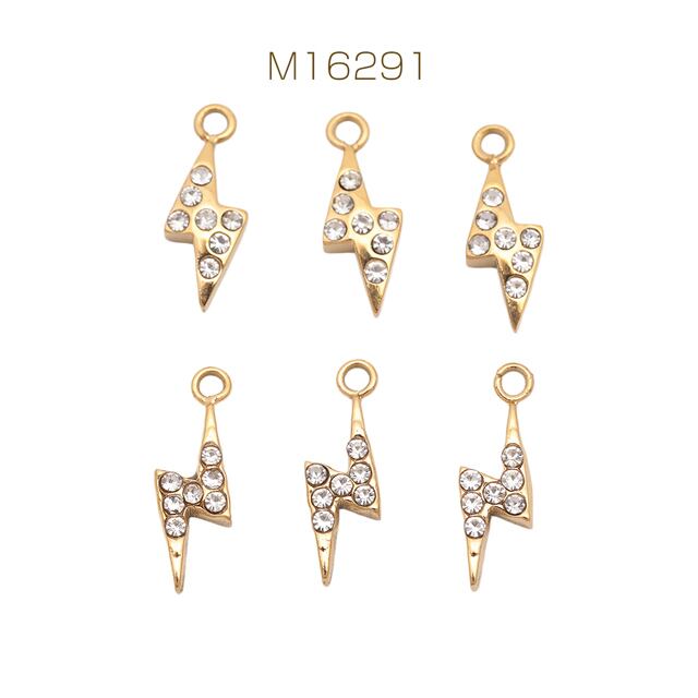 M16291 メタルチャーム 稲妻モチーフ ジルコニア付きチャーム 稲妻パーツ 雷チャーム ステンレス製 カン付き 9×16mm (1 ヶ)