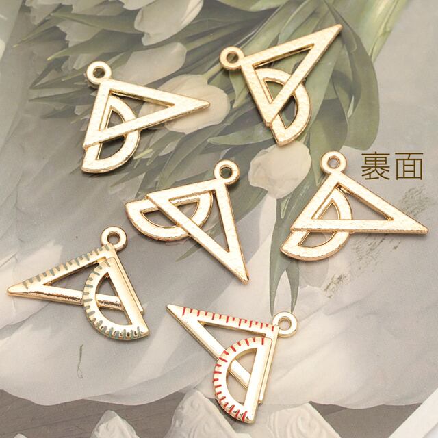 M16300 定規チャーム 三角定規 分度器 文房具 ミニチュア エポチャーム メタルチャーム 約20×22mm(4ヶ)