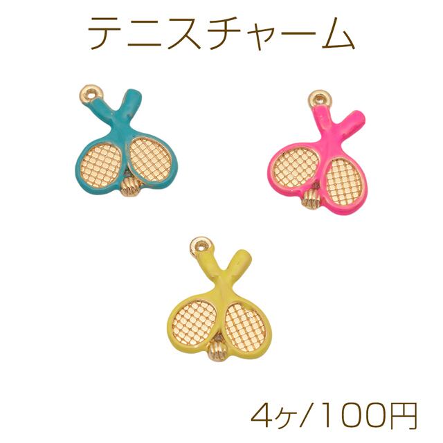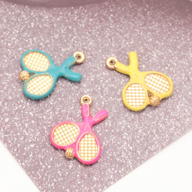 M16303 テニスチャーム ラケット&ボール ミニチュア スポーツチャーム エポチャーム メタルチャーム 約14×17mm(4ヶ)