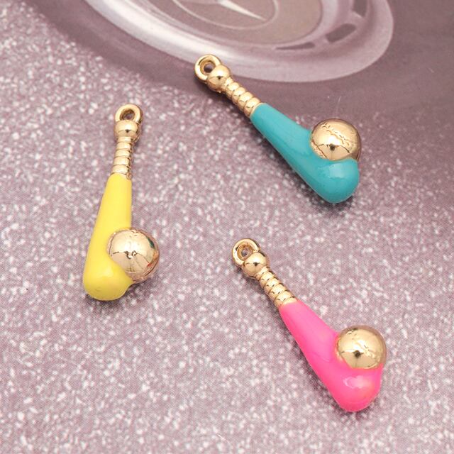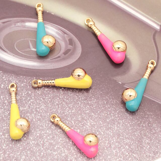 M16304 野球チャーム ベースボール バット&ボール ミニチュア スポーツチャーム エポチャーム メタルチャーム 約8×22mm(4ヶ)