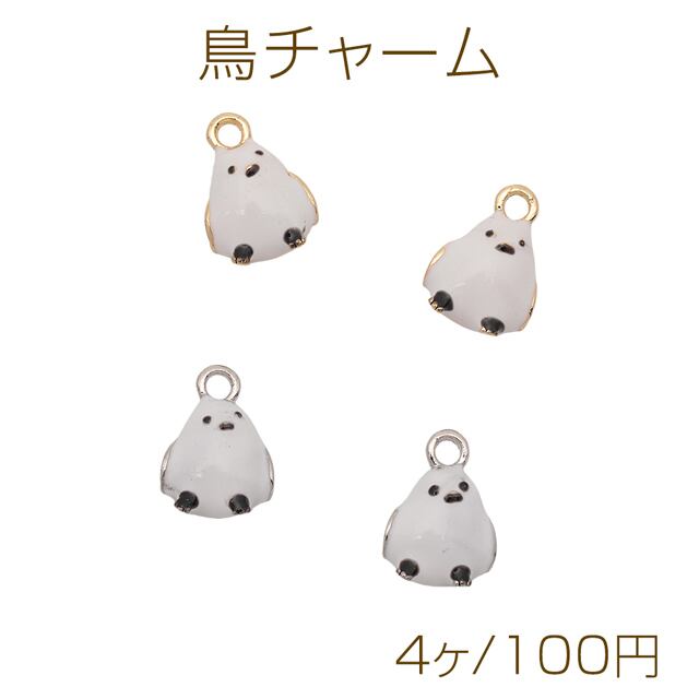 M16322 鳥チャーム 小鳥モチーフ ホワイト シマエナガ 生き物チャーム エポチャーム メタルチャーム 約8×11mm(4ヶ)