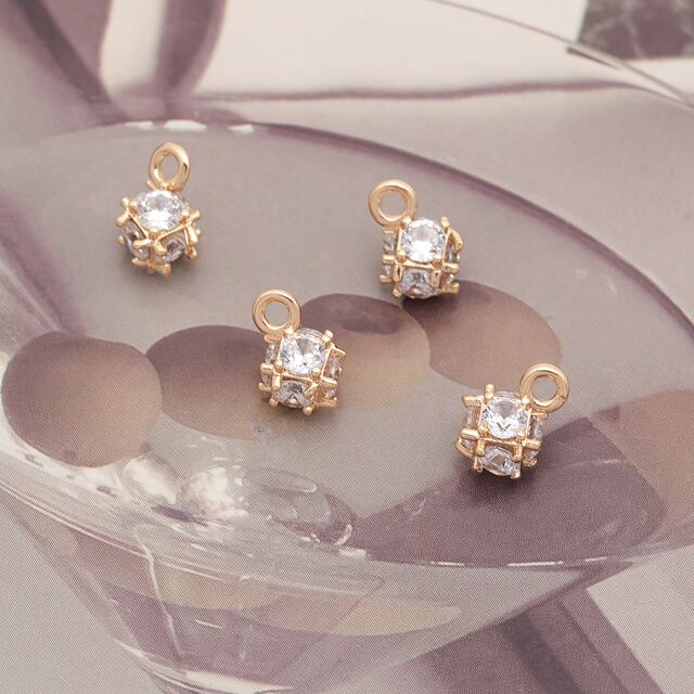 M16331 メタルチャーム 立体 キューブ ストーン付き キラキラ 約5×9mm(1ヶ)